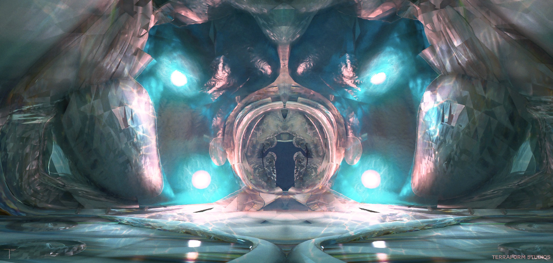 The chamber is large, round, with a clean, hard look unlike the rest of the station. Four barnacle-like doors lead in and out of the place. They’re identical to the ones you’d encounter on a Jelly ship. “All the comforts of home,” you mutter as you focus on the crumpled body lying smashed against the seam between floor and wall.